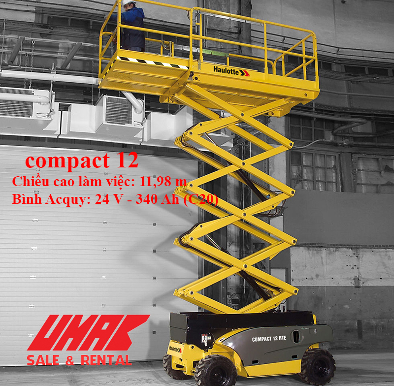 - Chiều cao làm việc tối đa 12m rất phổ biến làm việc tại nhiều nhà xưởng trên cả nước, tương đượng với chiều cao của 4 tầng nhà.
