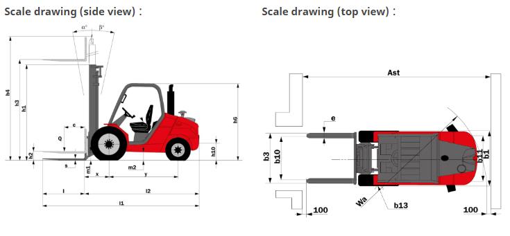 | Free lift (standard mast, lowered) | 0.135 m | 0’5″ |